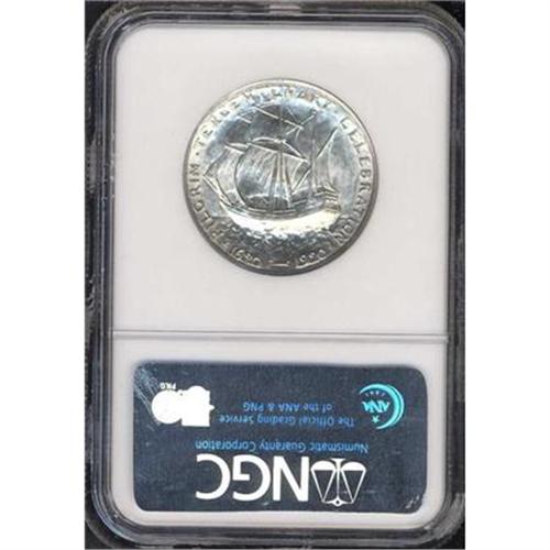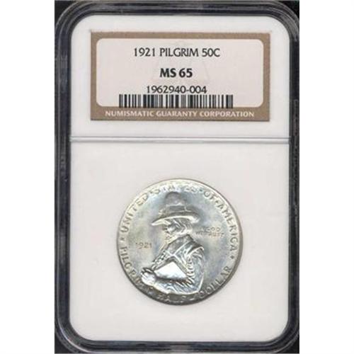 <b>1921 Pilgrim Half Dollar. NGC graded MS65.</b> Shimmering mint brilliance is seen over each side of this fully struck Gem. Simply outstanding quality for the scarcer 1921 issue, and not seen all that often in this superior state of preservation <b>(PCGS # 9360)</b>