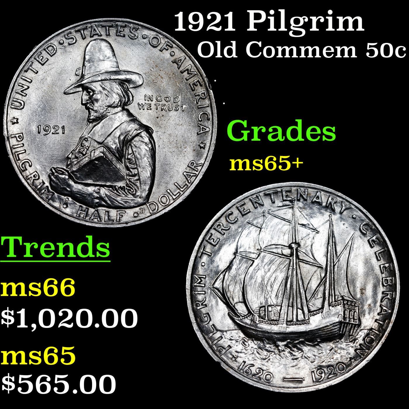 1921 Pilgrim Old Commem 50c Grades GEM+ Unc