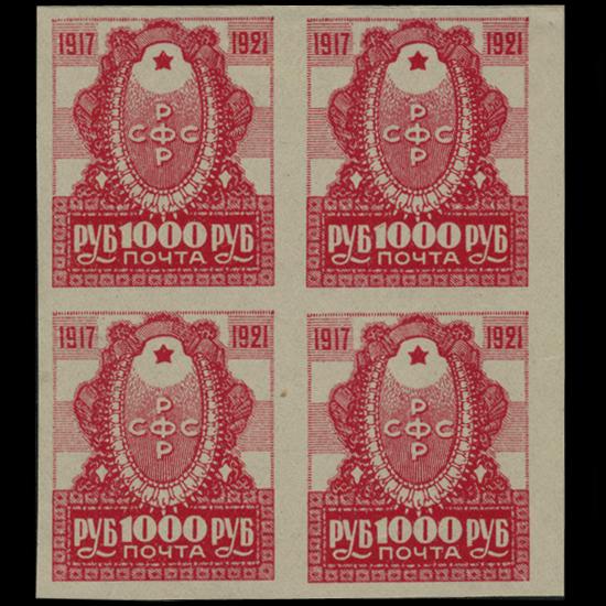 1921 RARE Early Soviet 1000 Ruble Mint Postage Stamp Imperforate Block of 4 (STM-0347)