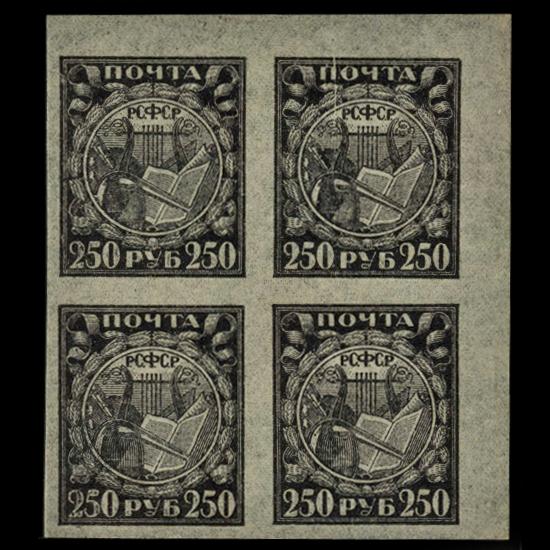 1921 RARE Early Soviet 250 Ruble Mint Postage Stamp Imperforate Block of 4 RARE Paper Variety (STM-0