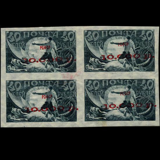 1921 RARE Early Soviet 40 Ruble Mint Postage Stamp Imperforate Block of 4 (STM-0348)