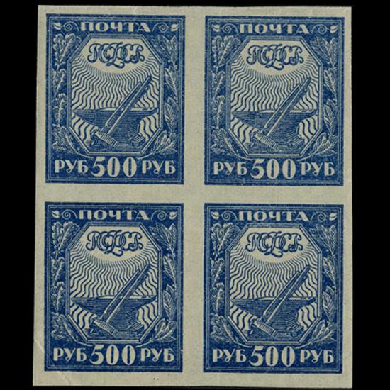 1921 RARE Early Soviet 500 Ruble Mint Postage Stamp Imperforate Block of 4 (STM-0340)