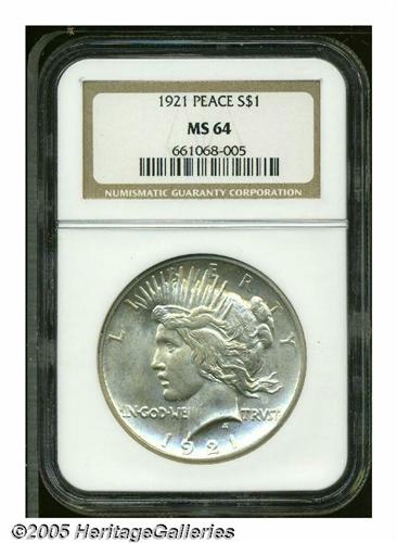 1921 S$1 MS64 NGC. Well struck and lustrous, with