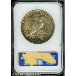 1921 S$1 MS64 NGC. Well struck with thick, frosty <B>1921 S$1 MS64 NGC.</B></I> Well struck with thick, frosty luster, dappled apricot-brown and dark-green patina, a few surface abrasions, and numerous small die striations (as struck) on each side of this attractive near-Gem. <BR><BR><B>Important notice:</B> Heritage usually auctions material at the rate of 200-250 lots per hour. On some occasions eBay Live bid software or the Internet may not be able to keep up with the pace of the auction. We recommend placing a realistic absentee bid now as insurance to avoid disappointment. Occasionally the auctioneer may eliminate or reject an eBay Live bid, and the auctioneer may also reopen a lot after the close of the eBay live bidding (usually because we missed an audience bid), and may reject your bid even if it shows you as the winning bidder. By bidding via eBay Live, you agree that Heritage may award the lot to another bidder at its sole discretion under the circumstances described above or any other reasonable circumstances. Since eBay bids are not shown to us until we open the lot on the floor, we treat those bids just like floor bids. In most cases the floor responds before the eBay bid is presented to us, due to Internet lag time, so for consistency we have made it a policy that floor bids are always considered first over tie eBay live bids. Also please note that all Heritage lots purchased through eBay Live carry a 20% Buyer's Premium. Please make sure you read the Terms and Conditions before you bid. This lot is being auctioned in conjunction with a live floor auction by Heritage Galleries & Auctioneers. All final auction and invoice information will be supplied by Heritage Galleries & Auctioneers, and all other information should be considered preliminary. Lot:7771