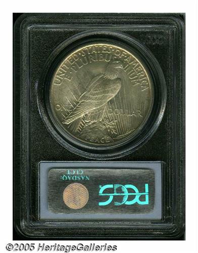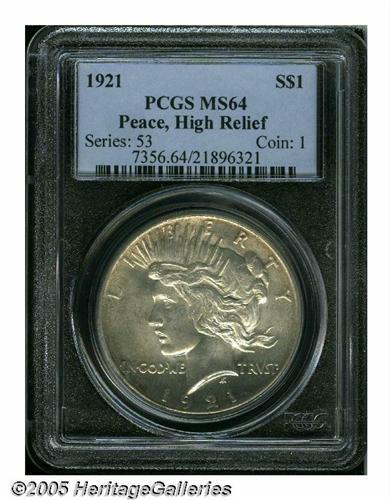 <B>1921<S$1> MS64 PCGS.</B></I> A golden-gray Choice first year Peace Dollar, the shimmering surfaces are cleaner than is customary for the grade. The strike is also above average for this high relief issue.