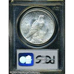 1921 S$1 MS64 PCGS. A lustrous and gently toned Ch <B>1921 S$1 MS64 PCGS.</B></I> A lustrous and gently toned Choice Silver Dollar that has clean fields and a good strike for this high relief issue. A faint vertical mark above the ear precludes assessment as a Gem. <BR><BR><B>Important notice:</B> Heritage usually auctions material at the rate of 200-250 lots per hour. On some occasions eBay Live bid software or the Internet may not be able to keep up with the pace of the auction. We recommend placing a realistic absentee bid now as insurance to avoid disappointment. Occasionally the auctioneer may eliminate or reject an eBay Live bid, and the auctioneer may also reopen a lot after the close of the eBay live bidding (usually because we missed an audience bid), and may reject your bid even if it shows you as the winning bidder. By bidding via eBay Live, you agree that Heritage may award the lot to another bidder at its sole discretion under the circumstances described above or any other reasonable circumstances. Since eBay bids are not shown to us until we open the lot on the floor, we treat those bids just like floor bids. In most cases the floor responds before the eBay bid is presented to us, due to Internet lag time, so for consistency we have made it a policy that floor bids are always considered first over tie eBay live bids. Also please note that all Heritage lots purchased through eBay Live carry a 20% Buyer's Premium. Please make sure you read the Terms and Conditions before you bid. This lot is being auctioned in conjunction with a live floor auction by Heritage Galleries & Auctioneers. All final auction and invoice information will be supplied by Heritage Galleries & Auctioneers, and all other information should be considered preliminary. Lot:7770
