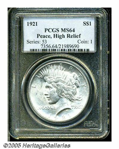 <B>1921<S$1> MS64 PCGS.</B></I> A lustrous and lightly toned Choice Peace Dollar, sharp for this premier issue. A small mark near the mouth prevents classification as a Gem.