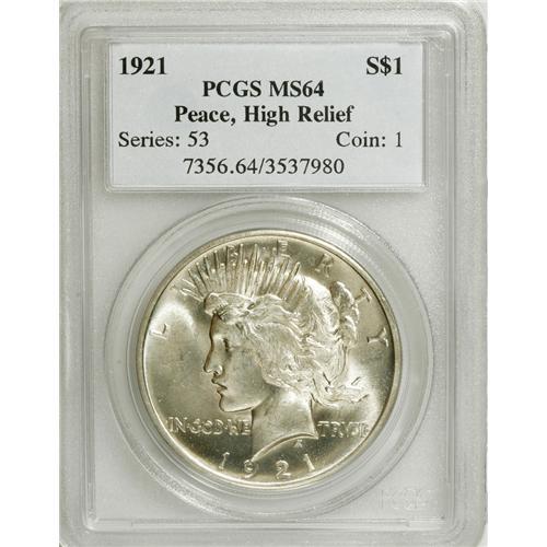 <B>1921 S$1 MS64 PCGS.</B></I> Intense mint luster produces a blindingly brilliant sheen across both sides of this untoned silver dollar. With bold striking details and few surface blemishes, this near-Gem seems conservatively graded by PCGS.<BR><BR><b>Shipping:</b> Coins & Currency (<a target="_blank" href="http://www.heritageauctions.com/common/shipping.php">view shipping information</a>)