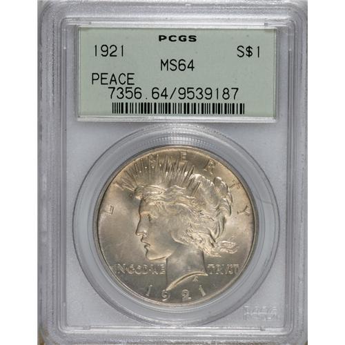 <B>1921 S$1 MS64 PCGS.</B></I> Rich chestnut-gold toning graces this lustrous and refreshingly unabraded near-Gem. The hair above the ear is incomplete, although sharper than usual for this strike-challenged issue. Certified in an old green label holder.<BR><BR><b>Shipping:</b> Coins & Currency (<a target="_blank" href="http://www.heritageauctions.com/common/shipping.php">view shipping information</a>)