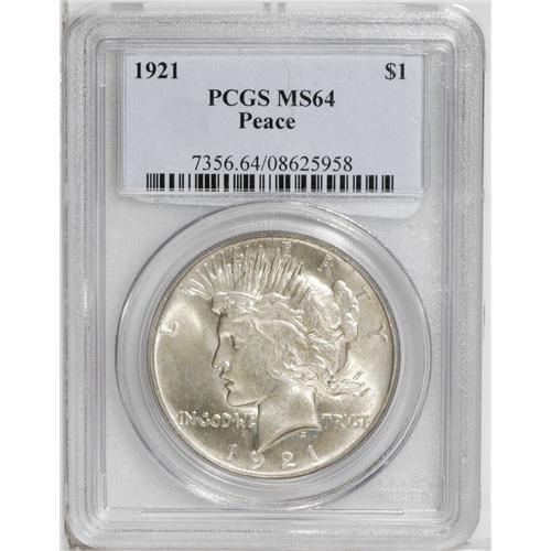 1921 S$1 MS64 PCGS. Softly struck as usual, though the