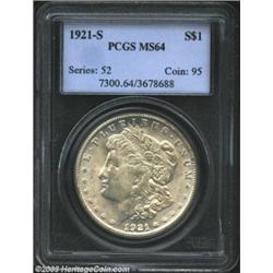 1921-S $1 MS64 PCGS. The pale golden-brown patina is especially pervasive on the obverse. Typical...