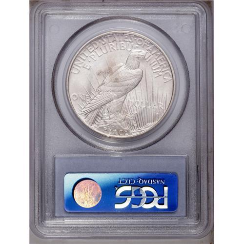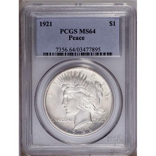 <B>1921<img border='0' src='http://www.heritagecoins.com/images/star.gif' width=10 height=10>$1> MS64 PCGS.</B></I> The typical soft strike of this issue shows up in the hair over Liberty's ear, but the reverse center is somewhat better defined than average. Silvery surfaces exhibit bright luster, and are visited by a splash of reddish-gold on the eagle. The grade is defined by light marks on Liberty's cheek and neck, and on the eagle and in the reverse fields. <BR><BR><B>Important notice:</B> Heritage usually auctions material at the rate of 200-250 lots per hour. On some occasions eBay Live bid software or the Internet may not be able to keep up with the pace of the auction. We recommend placing a realistic absentee bid now as insurance to avoid disappointment. Occasionally the auctioneer may eliminate or reject an eBay Live bid, and the auctioneer may also reopen a lot after the close of the eBay live bidding (usually because we missed an audience bid), and may reject your bid even if it shows you as the winning bidder. By bidding via eBay Live, you agree that Heritage may award the lot to another bidder at its sole discretion under the circumstances described above or any other reasonable circumstances. Since eBay bids are not shown to us until we open the lot on the floor, we treat those bids just like floor bids. In most cases the floor responds before the eBay bid is presented to us, due to Internet lag time, so for consistency we have made it a policy that floor bids are always considered first over tie eBay live bids. Also please note that all Heritage lots purchased through eBay Live carry a 20% Buyer's Premium. Please make sure you read the Terms and Conditions before you bid. This lot is being auctioned in conjunction with a live floor auction by Heritage Galleries & Auctioneers. All final auction and invoice information will be supplied by Heritage Galleries & Auctioneers, and all other information should be considered preliminary. Lot:3814 <BR><BR><B>Winning Notification and Billing:</B> After the FINAL session in this auction is complete, Heritage will send e-mail and snail mail invoices. This process normally takes several days. All final auction and invoice information will be supplied by Heritage Galleries & Auctioneers, and all other information should be considered preliminary. <BR><BR>This auction will be conducted on a live auction floor and over the Internet through eBay Live. If you choose to place an absentee bid, please take a moment to <font color='#0000ff'><u><a href='http://pages.ebay.com/liveauctions/help/before/laabsentee.html'>learn how eBay Live absentee bidding works</a></u></font><font color='#000000'>