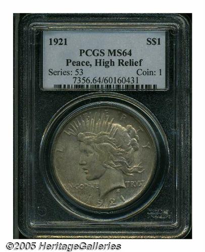 <B>1921<S$1> MS64 PCGS.</B></I> This example displays typically struck design elements, which are somewhat weak in the centers. Lustrous surfaces are bathed in medium-intensity magenta-gray, gold, sky-blue, and lavender patina, and display light grade-defining marks on Liberty's cheek and neck and on the eagle's shoulder.