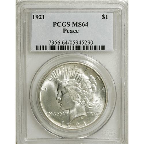 1921 S$1 MS64 PCGS. This near-Gem Peace dollar possess