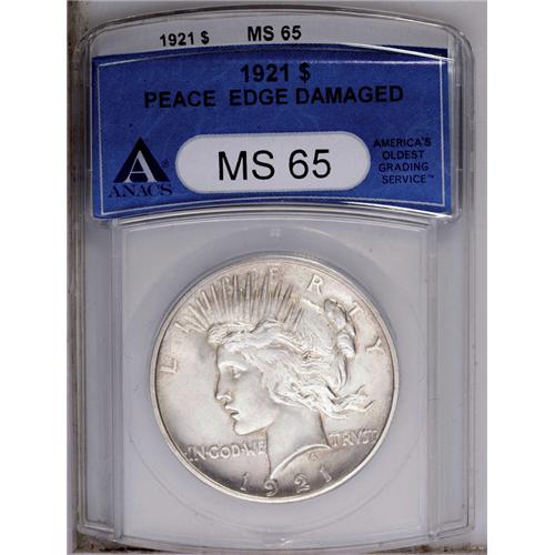 1921 S$1 MS65 Edge Damaged ANACS. Housed in one of the 1921[img border='0' src='http://www.heritagec