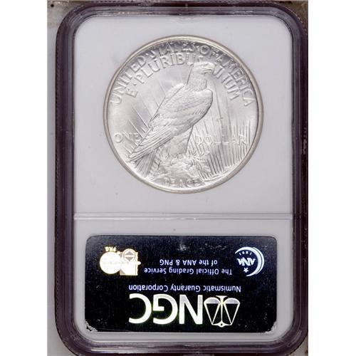 <B>1921<img border='0' src='http://www.heritagecoins.com/images/star.gif' width=10 height=10>$1> MS65 NGC.</B></I> A beautiful and brilliant Gem with unusually clean surfaces. As is customary for the issue, the centers lack a complete strike, but display above average definition.