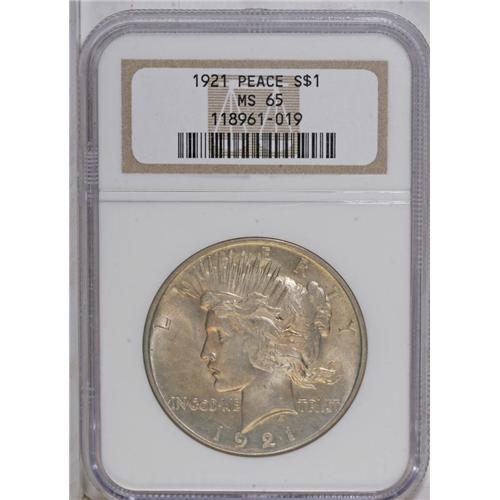 <B>1921 S$1 MS65 NGC.</B></I> A highly lustrous and typically struck piece with warm reddish-orange patina over both sides. If not for an abrasion on Liberty's neck, this Gem could have attained an even higher grade.<BR><I>From The Jones Beach Collection.</B></I><BR><BR><b>Shipping:</b> Coin/Currency (<a target="_blank" href="http://www.heritageauctions.com/common/shipping.php">view shipping information</a>)