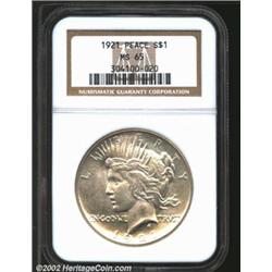 1921 S$1 MS65 NGC. A slight golden tint with a well above average strike for this normally weakly st