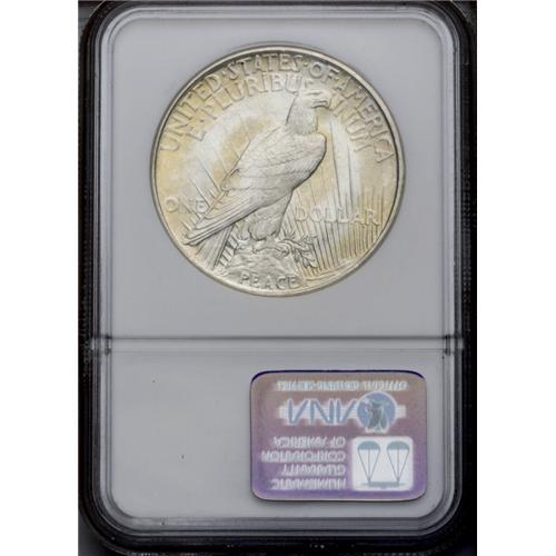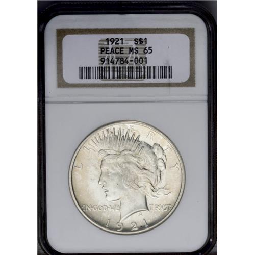 <B>1921<img border='0' src='http://www.heritagecoins.com/images/star.gif' width=10 height=10>$1> MS65 NGC.</B></I> Originally toned with darker accretions of lemon-golden color on the reverse. Well struck for the issue with some softness still evident in the centers, as usual. <BR><BR><B>Important notice:</B> Heritage usually auctions material at the rate of 200-250 lots per hour. On some occasions eBay Live bid software or the Internet may not be able to keep up with the pace of the auction. We recommend placing a realistic absentee bid now as insurance to avoid disappointment. Occasionally the auctioneer may eliminate or reject an eBay Live bid, and the auctioneer may also reopen a lot after the close of the eBay live bidding (usually because we missed an audience bid), and may reject your bid even if it shows you as the winning bidder. By bidding via eBay Live, you agree that Heritage may award the lot to another bidder at its sole discretion under the circumstances described above or any other reasonable circumstances. Since eBay bids are not shown to us until we open the lot on the floor, we treat those bids just like floor bids. In most cases the floor responds before the eBay bid is presented to us, due to Internet lag time, so for consistency we have made it a policy that floor bids are always considered first over tie eBay live bids. Also please note that all Heritage lots purchased through eBay Live carry a 20% Buyer's Premium. Please make sure you read the Terms and Conditions before you bid. This lot is being auctioned in conjunction with a live floor auction by Heritage Galleries & Auctioneers. All final auction and invoice information will be supplied by Heritage Galleries & Auctioneers, and all other information should be considered preliminary. Lot:3826 <BR><BR><B>Winning Notification and Billing:</B> After the FINAL session in this auction is complete, Heritage will send e-mail and snail mail invoices. This process normally takes several days. All final auction and invoice information will be supplied by Heritage Galleries & Auctioneers, and all other information should be considered preliminary. <BR><BR>This auction will be conducted on a live auction floor and over the Internet through eBay Live. If you choose to place an absentee bid, please take a moment to <font color='#0000ff'><u><a href='http://pages.ebay.com/liveauctions/help/before/laabsentee.html'>learn how eBay Live absentee bidding works</a></u></font><font color='#000000'>