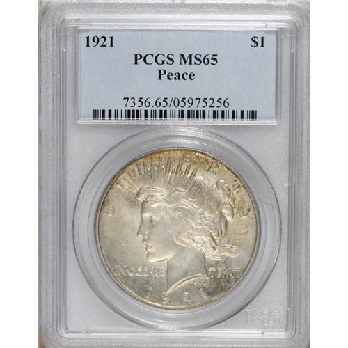 <B>1921 S$1 MS65 PCGS.</B></I> A glowing Gem representative of this first-year high-relief issue, one of just over a million examples coined. This gold-gray dollar is well struck aside from the usual softness at the center of the obverse.<BR><BR><b>Shipping:</b> Coins & Currency (<a target="_blank" href="http://www.heritageauctions.com/common/shipping.php">view shipping information</a>)