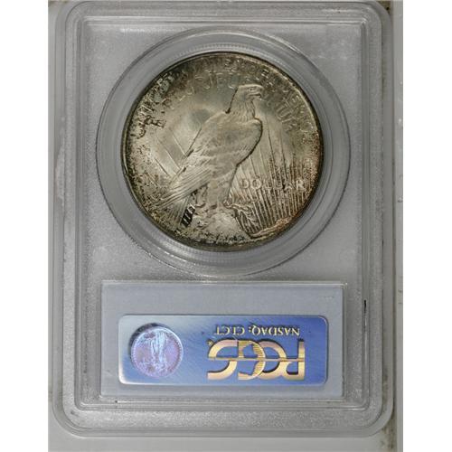 1921 S$1 MS65 PCGS. Dappled olive-gray and burnt-orang