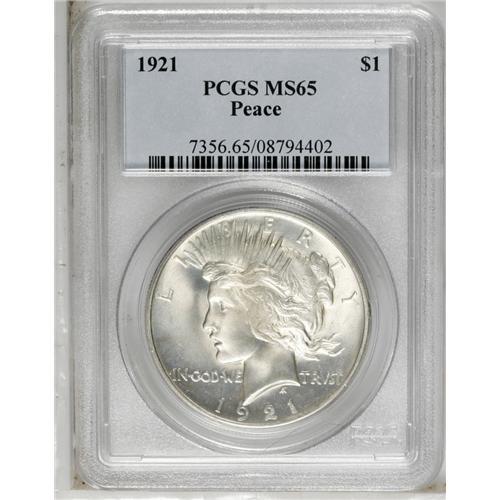 1921 S$1 MS65 PCGS. Gray-gold surfaces emit soft, glow