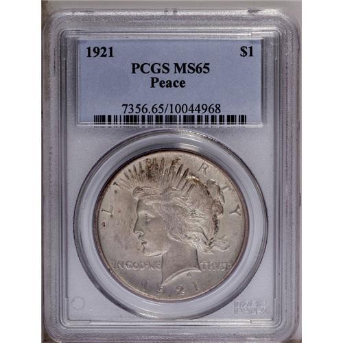 <B>1921<img border='0' src='http://www.heritagecoins.com/images/star.gif' width=10 height=10>$1> MS65 PCGS.</B></I> Originally toned with argent-gray patination equally distributed on each side. Well struck for the issue with some softness still evident in the centers, as usual.