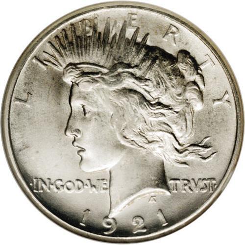 <B>1921<img border='0' src='http://www.heritagecoins.com/images/star.gif' width=10 height=10>$1> MS66 NGC.</B></I> The strike, which is well above average for this often poorly impressed issue, is certainly the most impressive technical feature of this premium quality Gem. The hair over Liberty's ear displays emerging definition, as do the wing feathers just above the eagle's right leg. Of course, the coin would not grade MS66 were the luster not full, and it does not disappoint in this regard. The texture is softly frosted, and some modest cartwheel effects are evident as the surfaces turn under the light. Both sides are also pleasing from an aesthetic viewpoint with an untoned sheen. A noteworthy lack of abrasions rounds out this coin's list of positive attributes. Census: 79 in 66, 6 finer (4/06).