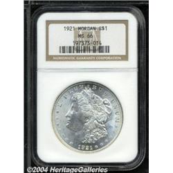 <B>1921<S$1> MS66 NGC.</B></I> Lightly abraded and brilliant, this Premium Gem has booming luster for the issue that dances around the coin's surfaces. The strike is also full and shows essentially every detail that was meant to be seen. <BR><BR><B>Important notice:</B> Heritage usually auctions material at the rate of 200-250 lots per hour. On some occasions eBay Live bid software or the Internet may not be able to keep up with the pace of the auction. We recommend placing a realistic absentee bid now as insurance to avoid disappointment. Occasionally the auctioneer may eliminate or reject an eBay Live bid, and the auctioneer may also reopen a lot after the close of the eBay live bidding (usually because we missed an audience bid), and may reject your bid even if it shows you as the winning bidder. By bidding via eBay Live, you agree that Heritage may award the lot to another bidder at its sole discretion under the circumstances described above or any other reasonable circumstances. Since eBay bids are not shown to us until we open the lot on the floor, we treat those bids just like floor bids. In most cases the floor responds before the eBay bid is presented to us, due to Internet lag time, so for consistency we have made it a policy that floor bids are always considered first over tie eBay live bids. Also please note that all Heritage lots purchased through eBay Live carry a 20% Buyer's Premium. Please make sure you read the Terms and Conditions before you bid. </span></font></tr></table></td></tr></table>