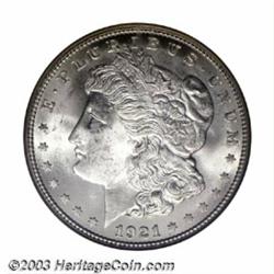 <TR><TD width="100%"><TABLE cellSpacing=1 cellPadding=3 width="100%" border=0><TBODY><TR><TD width="100%" bgColor=#79735c><FONT face=arial color=#ffffff size=3><B>Description</B> </FONT></TD></TR><TR><TD width="100%" bgColor=#ffffff><FONT face=arial size=2><B>1921-S $1 MS66 * NGC.</B></I> A snow-white, solid Gem that lives up to its star rating, being particularly well struck with an intensity of luster one seldom sees on this final year Morgan. </FONT></TD></TR></TBODY></TABLE></TD></TR></TBODY></TABLE><BR><A name=PricesRealized></A><TABLE cellSpacing=0 cellPadding=0 width="100%" bgColor=#000000 border=0><TBODY><TR><TD width="100%"><TABLE cellSpacing=1 cellPadding=3 width="100%" border=0><TBODY><TR><TD width="100%" bgColor=#79735c><A name=PR><FONT face=arial color=#ffffff size=3><B>Previous Prices from Heritage Auctions</B> </FONT></A></TD></TR><TR><TD bgColor=#f6f6ed><TABLE cellSpacing=0 cellPadding=0 width="100%" border=1><TBODY><TR><TD align=middle width="33%"><B>Date</B></TD><TD align=middle width="33%"><B>Service</B></TD><TD align=middle width="33%"><B>Price</B></TD></TR><TR bgColor=whitesmoke><TD width="33%"><B>04/01/2001</B></TD><TD width="33%">PCGS</TD><TD width="33%">$11,213.00</TD></TR><TR bgColor=whitesmoke><TD width="33%"><B>04/27/2002</B></TD><TD width="33%">PCGS</TD><TD width="33%">$8,050.00</TD></TR><TR bgColor=whitesmoke><TD width="33%"><B>01/05/2001</B></TD><TD width="33%">PCGS</TD><TD width="33%">$7,360.00</TD></TR><TR bgColor=whitesmoke><TD width="33%"><B>05/05/2000</B></TD><TD width="33%">PCGS</TD><TD width="33%">$8,050.00</TD></TR><TR bgColor=whitesmoke><TD width="33%"><B>03/01/2003</B></TD><TD width="33%">PCGS</TD><TD width="33%">$7,475.00</TD></TR><TR bgColor=whitesmoke><TD width="33%"><B>05/31/2001</B></TD><TD width="33%">NGC</TD><TD width="33%">$5,175.00</TD></TR><TR bgColor=whitesmoke><TD width="33%"><B>05/31/2001</B></TD><TD width="33%">NGC</TD><TD width="33%">$5,290.00</TD></TR><TR bgColor=whitesmoke><TD width="33%"><B>02/01/2000</B></TD><TD width="33%">NGC</TD><TD width="33%">$4,370.00</TD></TR><TR bgColor=whitesmoke><TD width="33%"><B>01/01/1999</B></TD><TD width="33%">NGC</TD><TD width="33%">$5,290.00</TD></TR><TR bgColor=whitesmoke><TD width="33%"><B>01/01/1999</B></TD><TD width="33%">NGC</TD><TD width="33%">$6,325.00</TD></TR><TR bgColor=whitesmoke><TD width="33%"><B>06/10/2000</B></TD><TD width="33%">NGC</TD><TD width="33%">$4,140.00</TD></TR><TR bgColor=whitesmoke><TD width="33%"><B>09/01/1999</B></TD><TD width="33%">NGC</TD><TD width="33%">$6,210.00</TD></TR><TR bgColor=whitesmoke><TD width="33%"><B>10/06/2001</B></TD><TD width="33%">NGC</TD><TD width="33%">$4,053.75</TD></TR><TR bgColor=whitesmoke><TD width="33%"><B>03/23/2003</B></TD><TD width="33%">NGC</TD><TD width="33%">$4,025.00</TD></TR></TBODY></TABLE></TD></TR><TR><TD bgColor=#ffffff><FONT face=arial size=1 ?>PLEASE NOTE: All prices realized reflect the final hammer price PLUS the buyer's premium in auctions that charge a buyer's premium. Each item has a notation at the top of the listing indicating whether that lot included a buyer's premium. Example: A item that sells with a final hammer price of $100 and a 20% buyer's premium will display with a price realized of $120. All information listed is intended to be as accurate as possible, but errors are possible. Please use this guide carefully and inform us of any inaccuracies. </FONT></TD></TR></TBODY></TABLE></TD></TR></TBODY></TABLE><BR><TABLE cellSpacing=0 cellPadding=0 width="100%" bgColor=#000000 border=0><TBODY><TR><TD width="100%"><TABLE cellSpacing=1 cellPadding=3 width="100%" border=0><TBODY><TR><TD width="100%" bgColor=#79735c colSpan=6><FONT face=arial color=#ffffff size=3><B>Price Guide*</B> </FONT></TD></TR><TR bgColor=#f6f6ed><TD align=middle><B>Grade</B> </TD><TD align=middle><B>Coin World<BR>(Trends)</B> </TD><TD align=middle><B>Numismedia<BR>Retail</B> </TD><TD align=middle><B>Numismedia<BR>Wholesale</B> </TD><TD align=middle><B>Coin<BR>Universe</B> </TD><TD align=middle><B>Heritage<BR>Value Index</B> </TD></TR><TR bgColor=#ffffff><TD align=middle>65</TD><TD align=right>$1,650.00</TD><TD align=right>---</TD><TD align=right>$1,150.00</TD><TD align=right>$1,650.00</TD><TD align=right>$1,260.00</TD></TR><TR style="FONT-WEIGHT: bold" bgColor=#cccfdd><TD align=middle>66</TD><TD align=right>$10,000.00</TD><TD align=right>---</TD><TD align=right>$7,125.00</TD><TD align=right>$12,600.00</TD><TD align=right>$8,800.00</TD></TR><TR bgColor=#ffffff><TD align=middle>67</TD><TD align=right>---</TD><TD align=right>---</TD><TD align=right>---</TD><TD align=right>---</TD><TD align=right>$21,500.00</TD></TR><TR bgColor=#ffffff><TD colSpan=6><FONT size=1>*All information listed is intended to be as accurate as possible, but errors are possible. No item may be returned or refused based on this information which is provided as a service to our customers. You should contact each pricing source directly to determine the accuracy of this information. </FONT></TD></TR></TBODY></TABLE></TD></TR></TBODY></TABLE><BR><TABLE cellSpacing=0 cellPadding=0 width="100%" bgColor=#000000 border=0><TBODY><TR><TD width="100%"><TABLE cellSpacing=1 cellPadding=3 width="100%" border=0><TBODY><TR><TD width="100%" bgColor=#79735c><FONT face=arial color=#ffffff size=3><B>Population Guide</B> </FONT></TD></TR><TR bgColor=#ffffff><TD align=middle><!-- Begin Output of Population Grid--><TABLE cellSpacing=0 cellPadding=0 width="100%" border=0><TBODY><TR><TD vAlign=center><TABLE cellSpacing=0 width="100%" border=1 cellsadding="3"><TBODY><TR><TD vAlign=center><TABLE cellSpacing=0 cellPadding=3 width="100%" border=1><TBODY><TR><TD vAlign=center align=middle bgColor=#f0f1e8 colSpan=2 <CENTER><FONT face=Arial size=2><B>PCGS Pop </B></FONT><CENTER></CENTER></TD><TD vAlign=center align=middle bgColor=#f0f1e8 colSpan=2><CENTER><FONT face=Arial size=2><B>NGC Pop</B></CENTER></FONT></TD></TR><TR><TD vAlign=center><FONT face=Arial size=2>(66)</FONT> </TD><TD vAlign=center align=right>