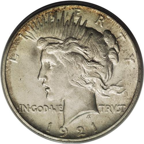 <B>1921 S$1 MS66 PCGS.</B></I> An ivory Gem, this piece is impressive for its satiny silver luster and speckled gold toning. Although slight central weakness can be seen on each side, the strike is sharper than normally encountered on this high relief issue. PCGS has only certified five finer examples of this important date (2/07).<BR><BR><b>Shipping:</b> Coins & Currency (<a target="_blank" href="http://www.heritageauctions.com/common/shipping.php">view shipping information</a>)