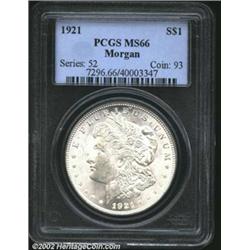 1921 S$1 MS66 PCGS. Superbly defined for the issue with pure-white, glistening mint frost. Only a fe