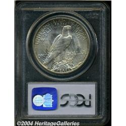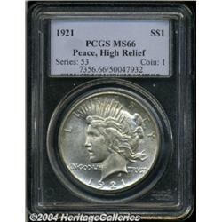 <B>1921<S$1> MS66 PCGS.</B></I> Speckles of gold toning over each side. Generally well struck, except for a touch of softness in the obverse center. <BR><BR><B>Important notice:</B> Heritage usually auctions material at the rate of 200-250 lots per hour. On some occasions eBay Live bid software or the Internet may not be able to keep up with the pace of the auction. We recommend placing a realistic absentee bid now as insurance to avoid disappointment. Occasionally the auctioneer may eliminate or reject an eBay Live bid, and the auctioneer may also reopen a lot after the close of the eBay live bidding (usually because we missed an audience bid), and may reject your bid even if it shows you as the winning bidder. By bidding via eBay Live, you agree that Heritage may award the lot to another bidder at its sole discretion under the circumstances described above or any other reasonable circumstances. Since eBay bids are not shown to us until we open the lot on the floor, we treat those bids just like floor bids. In most cases the floor responds before the eBay bid is presented to us, due to Internet lag time, so for consistency we have made it a policy that floor bids are always considered first over tie eBay live bids. Also please note that all Heritage lots purchased through eBay Live carry a 20% Buyer's Premium. Please make sure you read the Terms and Conditions before you bid. </span></font></tr></table></td></tr></table>