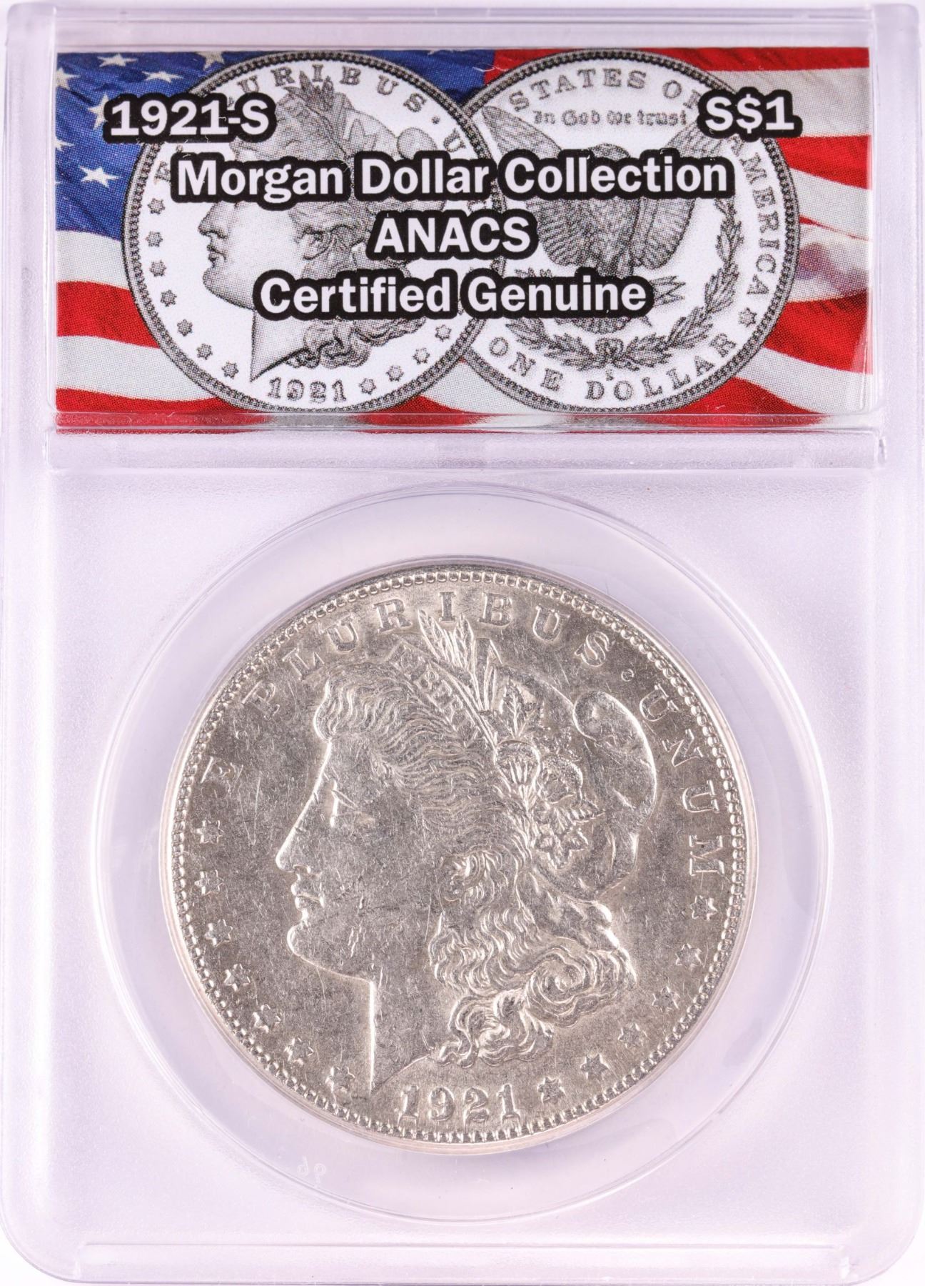 One 1921-S $1 Morgan Silver Dollar Coin ANACS Genuine.