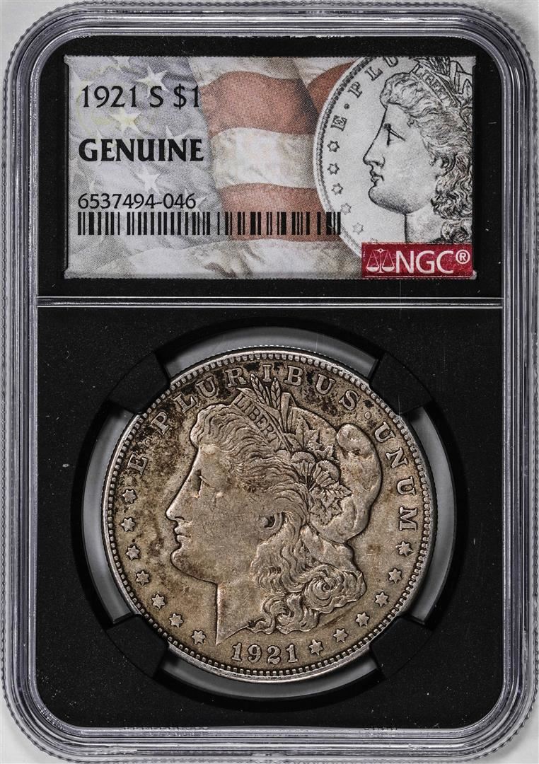 One 1921-S $1 Morgan Silver Dollar Coin NGC Genuine. NGC Certified.