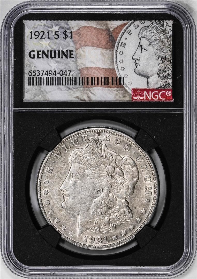 One 1921-S $1 Morgan Silver Dollar Coin NGC Genuine. NGC Certified.