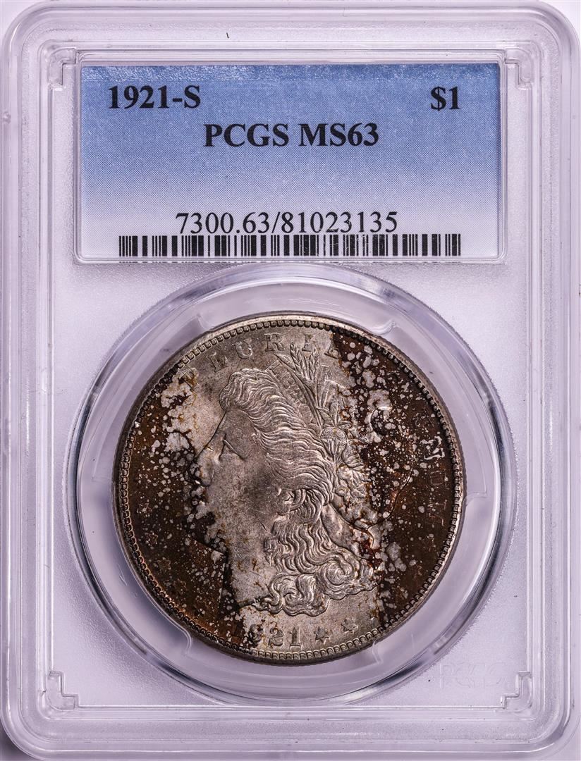 One 1921-S $1 Morgan Silver Dollar Coin PCGS MS63 Nice Toning. PCGS Graded.