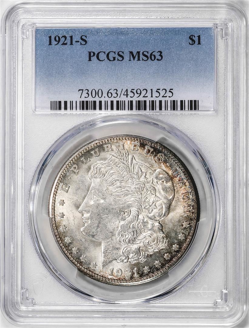 One 1921-S $1 Morgan Silver Dollar Coin PCGS MS63. PCGS Graded.