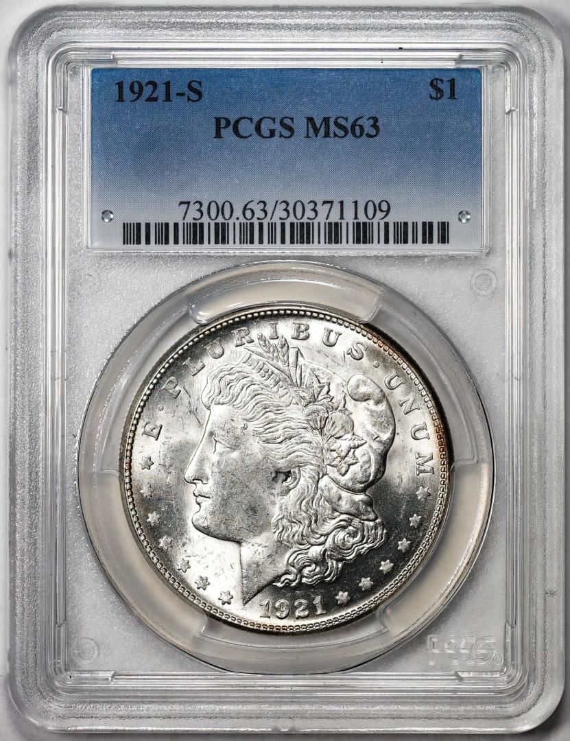One 1921-S $1 Morgan Silver Dollar Coin PCGS MS63. PCGS Graded.