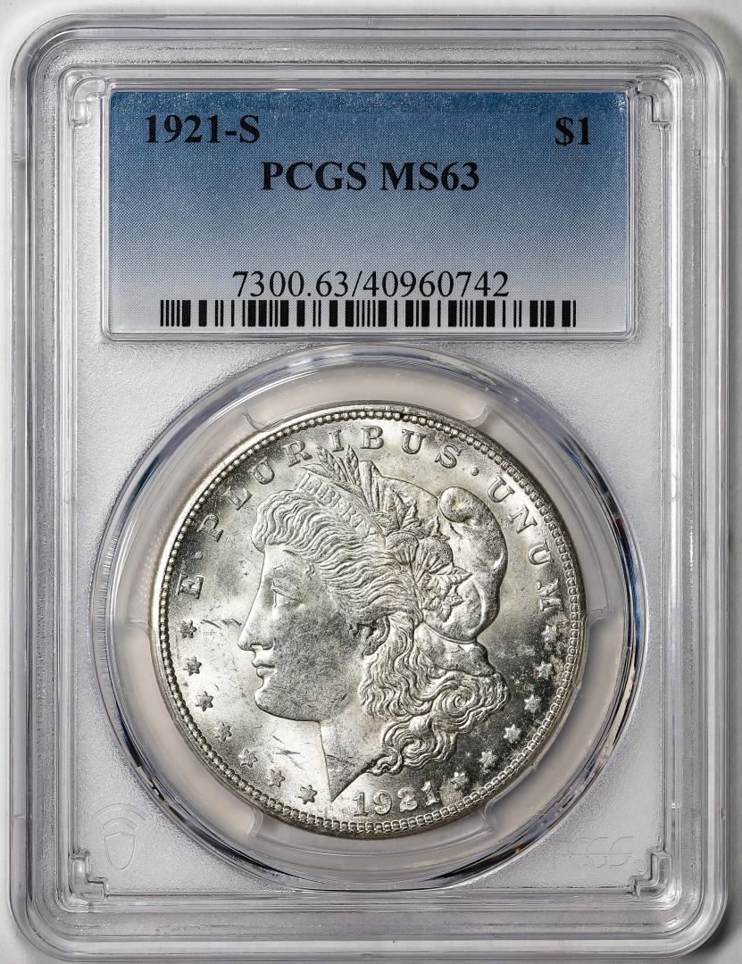 One 1921-S $1 Morgan Silver Dollar Coin PCGS MS63. PCGS Graded.
