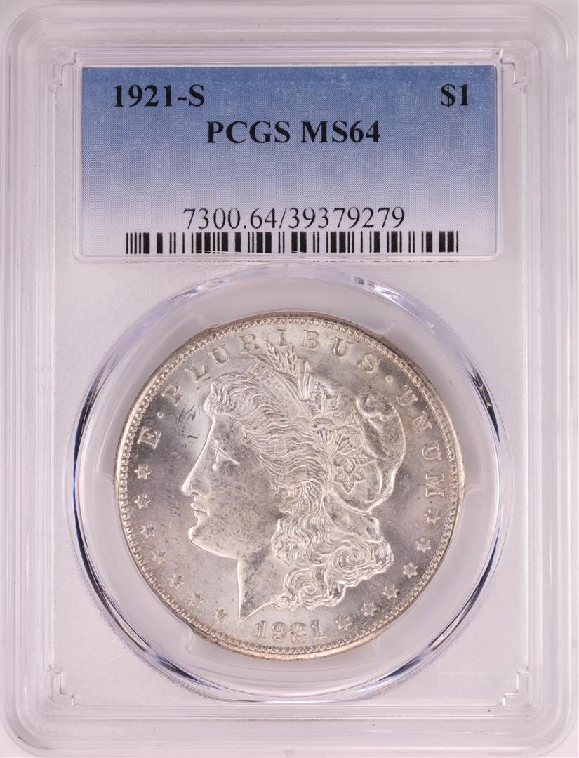 One 1921-S $1 Morgan Silver Dollar Coin PCGS MS64. PCGS Graded.