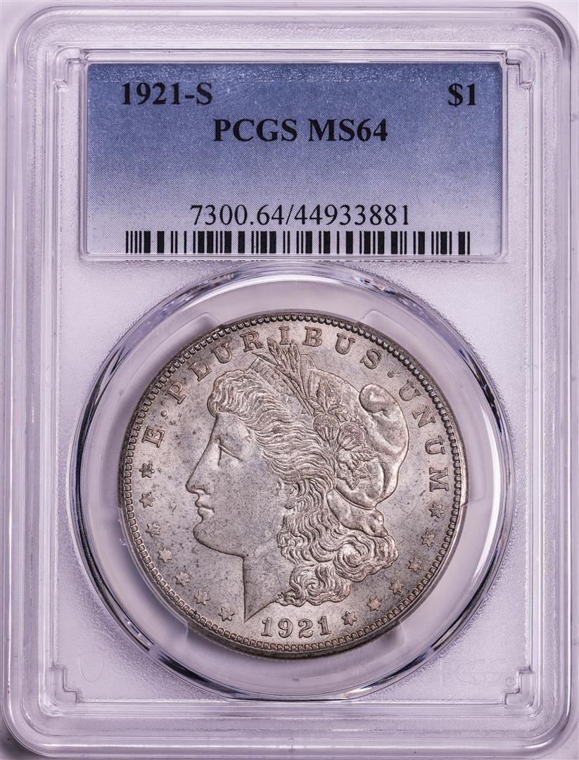 One 1921-S $1 Morgan Silver Dollar Coin PCGS MS64. PCGS Graded.