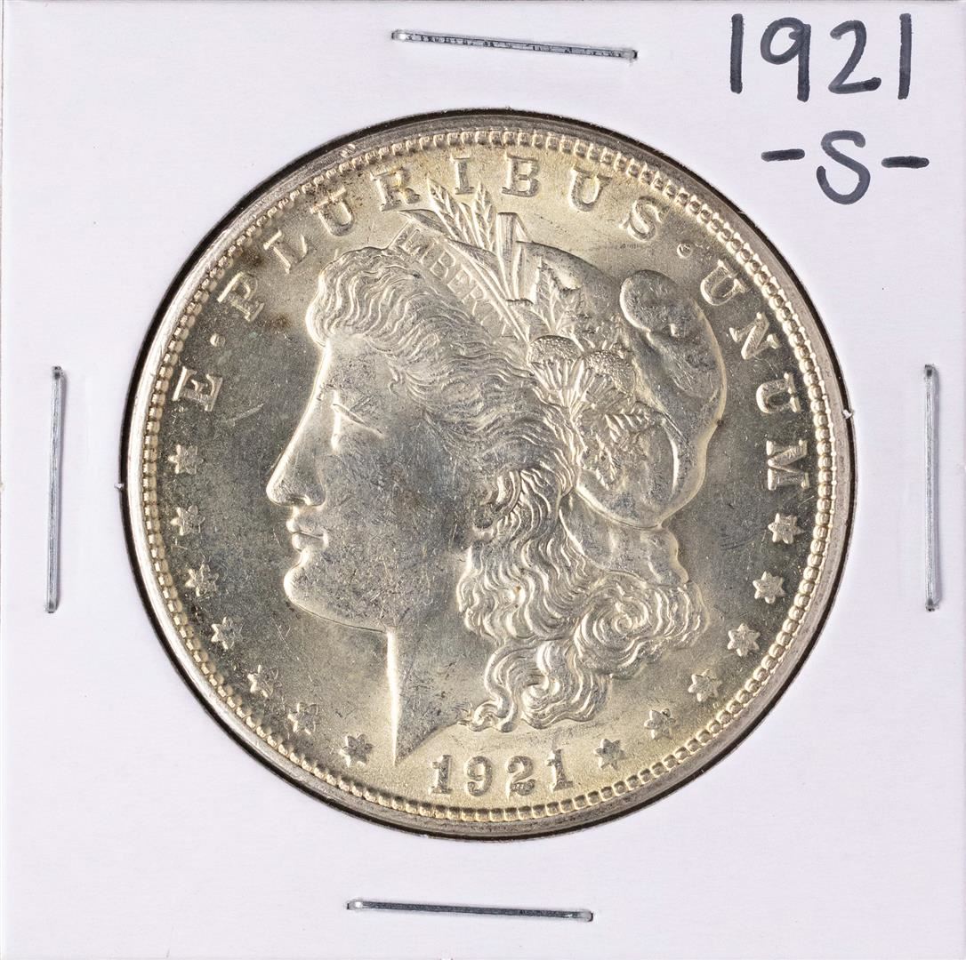 One 1921-S $1 Morgan Silver Dollar Coin.