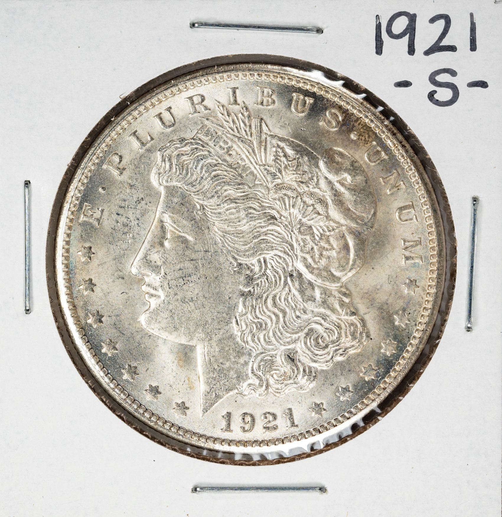 One 1921-S $1 Morgan Silver Dollar Coin.