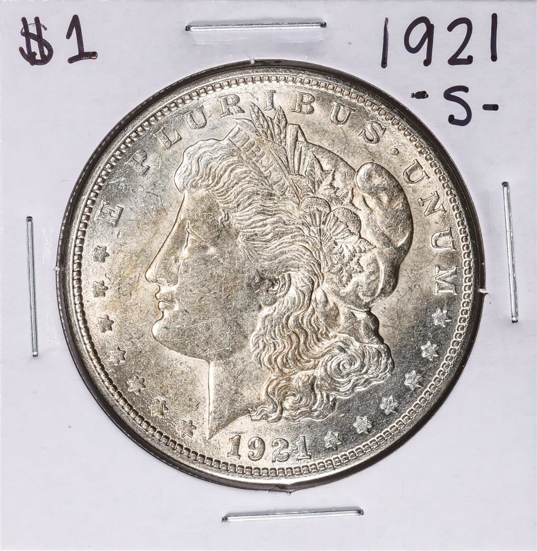 One 1921-S $1 Morgan Silver Dollar Coin.