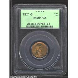 1921-S 1C MS64 Red PCGS. Dusky yellow-green in color. A carefully preserved near-Gem that has reason