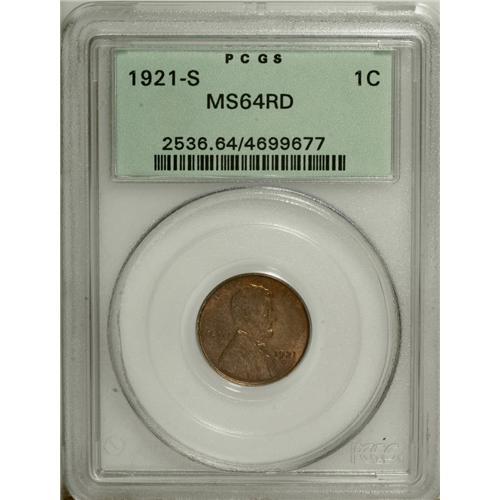 <B>1921-S 1C MS64 Red PCGS.</B></I> Very well struck for this long overlooked S-mint issue, with only the slightest mellowing over pleasant orange and golden-amber surfaces. The extreme rarity of the 1921-S in Gem Red condition places it above and beyond most collector's reach, lending greater importance to this appealing representative.<BR><BR><b>Shipping:</b> Coin/Currency (<a target="_blank" href="http://www.heritageauctions.com/common/shipping.php">view shipping information</a>)