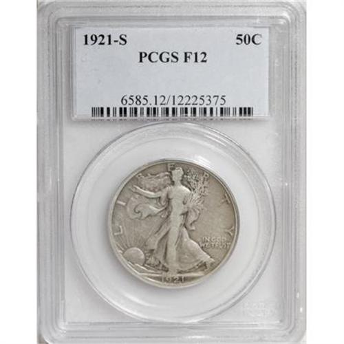 <B>1921-S 50C F12 PCGS.</B></I> PCGS Population (69/397). NGC Census: (56/318). Mintage: 548,000. Numismedia Wsl. Price for NGC/PCGS coin in F12: $200. (#6585)<BR><BR><B>Coin Engraver:</B> Adolph A. Weinman<BR><BR><b>Shipping:</b> Coins & Currency (<a target="_blank" href="http://www.heritageauctions.com/common/shipping.php">view shipping information</a>)