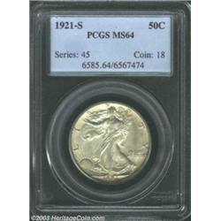 <table><tr><td><TABLE cellSpacing=0 cellPadding=0 width="100%" bgColor=#000000 border=0><TBODY> <TR><TD width="100%"><TABLE cellSpacing=1 cellPadding=3 width="100%" border=0><TBODY><TR><TD width="100%" bgColor=#79735c><FONT face=arial color=#ffffff size=3><B>Description</B> </FONT></TD></TR><TR><TD width="100%" bgColor=#ffffff><FONT face=arial size=2><B>1921-S 50C MS64 PCGS.</B></I> While the 1921-S does not have the lowest mintage in the series, fewer high grade pieces were set aside, and as a result, it is the key to the entire Walking Liberty half series. This is an especially well struck coin; in fact, one of the strongest strikes we have ever seen on this issue. The surfaces are notably free from abrasions and the subdued, satiny luster is overlaid by a light accent of golden toning on each side. One of the finest certified examples from this legendary issue in one of the most popular series in U.S. numismatics. Population: 40 in 64, 24 finer (8/03). </FONT></TD></TR></TBODY></TABLE></TD></TR></TBODY></TABLE><BR><A name=PricesRealized></A><TABLE cellSpacing=0 cellPadding=0 width="100%" bgColor=#000000 border=0><TBODY><TR><TD width="100%"><TABLE cellSpacing=1 cellPadding=3 width="100%" border=0><TBODY><TR><TD width="100%" bgColor=#79735c><A name=PR><FONT face=arial color=#ffffff size=3><B>Previous Prices from Heritage Auctions</B> </FONT></A></TD></TR><TR><TD bgColor=#f6f6ed><TABLE cellSpacing=0 cellPadding=0 width="100%" border=1><TBODY><TR><TD align=middle width="33%"><B>Date</B></TD><TD align=middle width="33%"><B>Service</B></TD><TD align=middle width="33%"><B>Price</B></TD></TR><TR bgColor=whitesmoke><TD width="33%"><B>09/20/2003</B></TD><TD width="33%">PCGS</TD><TD width="33%">$32,775.00</TD></TR><TR bgColor=whitesmoke><TD width="33%"><B>03/23/2003</B></TD><TD width="33%">PCGS</TD><TD width="33%">$25,300.00</TD></TR><TR bgColor=whitesmoke><TD width="33%"><B>09/28/2002</B></TD><TD width="33%">PCGS</TD><TD width="33%">$32,200.00</TD></TR><TR bgColor=whitesmoke><TD width="33%"><B>06/08/2002</B></TD><TD width="33%">PCGS</TD><TD width="33%">$25,300.00</TD></TR><TR bgColor=whitesmoke><TD width="33%"><B>06/08/2002</B></TD><TD width="33%">PCGS</TD><TD width="33%">$25,875.00</TD></TR><TR bgColor=whitesmoke><TD width="33%"><B>08/17/1996</B></TD><TD width="33%">NGC</TD><TD width="33%">$27,500.00</TD></TR><TR bgColor=whitesmoke><TD width="33%"><B>02/01/1999</B></TD><TD width="33%">PCGS</TD><TD width="33%">$22,550.00</TD></TR></TBODY></TABLE></TD></TR><TR><TD bgColor=#ffffff><FONT face=arial size=1 ?>PLEASE NOTE: All prices realized reflect the final hammer price PLUS the buyer's premium in auctions that charge a buyer's premium. Each item has a notation at the top of the listing indicating whether that lot included a buyer's premium. Example: A item that sells with a final hammer price of $100 and a 20% buyer's premium will display with a price realized of $120. All information listed is intended to be as accurate as possible, but errors are possible. Please use this guide carefully and inform us of any inaccuracies. </FONT></TD></TR></TBODY></TABLE></TD></TR></TBODY></TABLE><BR><TABLE cellSpacing=0 cellPadding=0 width="100%" bgColor=#000000 border=0><TBODY><TR><TD width="100%"><TABLE cellSpacing=1 cellPadding=3 width="100%" border=0><TBODY><TR><TD width="100%" bgColor=#79735c colSpan=6><FONT face=arial color=#ffffff size=3><B>Price Guide*</B> </FONT></TD></TR><TR bgColor=#f6f6ed><TD align=middle><B>Grade</B> </TD><TD align=middle><B>Coin World<BR>(Trends)</B> </TD><TD align=middle><B>Numismedia<BR>Retail</B> </TD><TD align=middle><B>Numismedia<BR>Wholesale</B> </TD><TD align=middle><B>Coin<BR>Universe</B> </TD><TD align=middle><B>Heritage<BR>Value Index</B> </TD></TR><TR bgColor=#ffffff><TD align=middle>63</TD><TD align=right>$20,000.00</TD><TD align=right>---</TD><TD align=right>$15,500.00</TD><TD align=right>$26,500.00</TD><TD align=right>$16,250.00</TD></TR><TR style="FONT-WEIGHT: bold" bgColor=#cccfdd><TD align=middle>64</TD><TD align=right>$40,000.00</TD><TD align=right>---</TD><TD align=right>$25,300.00</TD><TD align=right>$45,000.00</TD><TD align=right>$29,818.75</TD></TR><TR bgColor=#ffffff><TD align=middle>65</TD><TD align=right>$60,000.00</TD><TD align=right>---</TD><TD align=right>$49,750.00</TD><TD align=right>$82,500.00</TD><TD align=right>$48,250.00</TD></TR><TR bgColor=#ffffff><TD colSpan=6><FONT size=1>*All information listed is intended to be as accurate as possible, but errors are possible. No item may be returned or refused based on this information which is provided as a service to our customers. You should contact each pricing source directly to determine the accuracy of this information. </FONT></TD></TR></TBODY></TABLE></TD></TR></TBODY></TABLE><BR><TABLE cellSpacing=0 cellPadding=0 width="100%" bgColor=#000000 border=0><TBODY><TR><TD width="100%"><TABLE cellSpacing=1 cellPadding=3 width="100%" border=0><TBODY><TR><TD width="100%" bgColor=#79735c><FONT face=arial color=#ffffff size=3><B>Population Guide</B> </FONT></TD></TR><TR bgColor=#ffffff><TD align=middle><!-- Begin Output of Population Grid--><TABLE cellSpacing=0 cellPadding=0 width="100%" border=0><TBODY><TR><TD vAlign=center><TABLE cellSpacing=0 width="100%" border=1 cellsadding="3"><TBODY><TR><TD vAlign=center><TABLE cellSpacing=0 cellPadding=3 width="100%" border=1><TBODY><TR><TD vAlign=center align=middle bgColor=#f0f1e8 colSpan=2 <CENTER><FONT face=Arial size=2><B>PCGS Pop </B></FONT><CENTER></CENTER></TD><TD vAlign=center align=middle bgColor=#f0f1e8 colSpan=2><CENTER><FONT face=Arial size=2><B>NGC Pop</B></CENTER></FONT></TD></TR><TR><TD vAlign=center><FONT face=Arial size=2>(64)</FONT> </TD><TD vAlign=center align=right><FONT face=Arial size=2>54</FONT> </TD><TD vAlign=center><FONT face=Arial size=2>(64)</FONT> </TD><TD vAlign=center align=right><FONT face=Arial size=2>44</FONT> </TD></TR><TR><TD vAlign=center><FONT face=Arial size=2>(>64)</FONT> </TD><TD vAlign=center align=right><FONT face=Arial siz