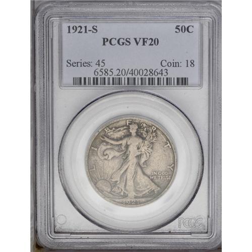 1921-S 50C VF20 PCGS. A moderately circulated example